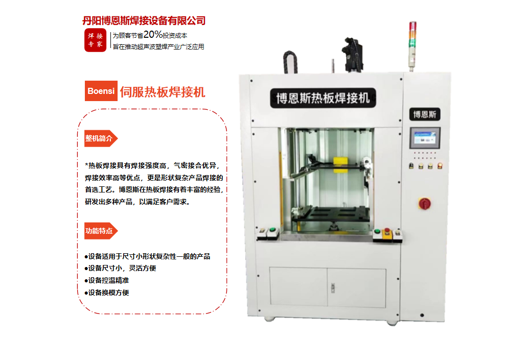 丹陽博恩斯焊接設(shè)備有限公司是塑料焊接領(lǐng)域集研發(fā)設(shè)計、生產(chǎn)制造、銷售服務(wù)為一體的企業(yè)。公司自成立以來堅持“以人為本”的理念,組織了一支強大的技術(shù)研發(fā)團隊,攜多年來積累的豐富經(jīng)驗,并結(jié)合國際先進塑料焊接技術(shù),根據(jù)市場需要,不斷開發(fā)具有核心競爭力的新產(chǎn)品。公司具有很強的非標機械研發(fā)、設(shè)計、生產(chǎn)能力,可為廣大客戶定制各類專用機械設(shè)備。公司設(shè)計生產(chǎn)的塑料焊接設(shè)備已廣泛應(yīng)用于汽車、電子、家電、醫(yī)療器械、無紡布...